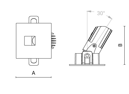 asimmetrica Imax=30° | 8W | 230lm | 3000K | 90 | ON/OFF | 75mm | 80mm |