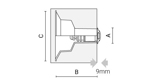 | Codice | Ottica | Watt | Lumen | CCT | CRI | Controllo | A | B | C | |