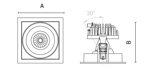 | Codice | Ottica | Watt | Lumen | CCT | CRI | Controllo | A | B | C | |