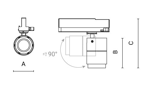 | Codice | Ottica | Watt | Lumen | CCT | CRI | Controllo | A | B | C | |