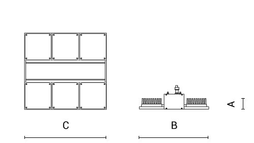 | Codice | Ottica | Watt | Lumen | CCT | CRI | Controllo | A | B | C | |